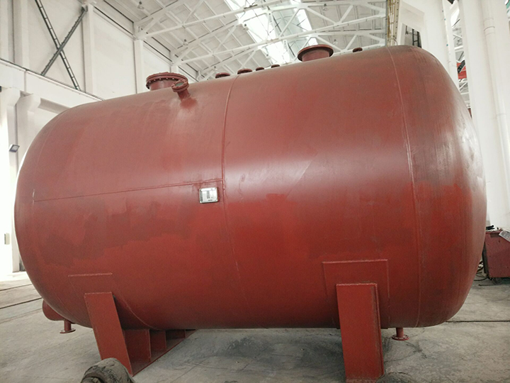 蒸餾釜,涉及一種化工生產(chǎn)中蒸餾所使用的釜。主要是為解決現(xiàn)有的蒸餾釜在生產(chǎn)過程中當(dāng)物料中含有固狀物及高沸點(diǎn)物時需間斷檢修清理的問題而設(shè)計的。它包括蒸餾釜?dú)んw,在蒸餾釜?dú)んw上方是上封頭,上封頭上有氣體出口,上封頭下方有除沫器,除沫器下方為貯料室,貯料室上部有進(jìn)料口,室內(nèi)設(shè)立式蒸發(fā)器,蒸餾釜下部為固狀物及高沸點(diǎn)物沉降室,在沉降室內(nèi)設(shè)攪拌器,攪拌器軸通過軸封與外部電機(jī)相連,蒸餾釜底部設(shè)固狀物及高沸點(diǎn)物排出口。優(yōu)點(diǎn)是可隨時排出固狀物及高沸點(diǎn)物,無須間斷檢修清理,保證生產(chǎn)連續(xù)進(jìn)行。